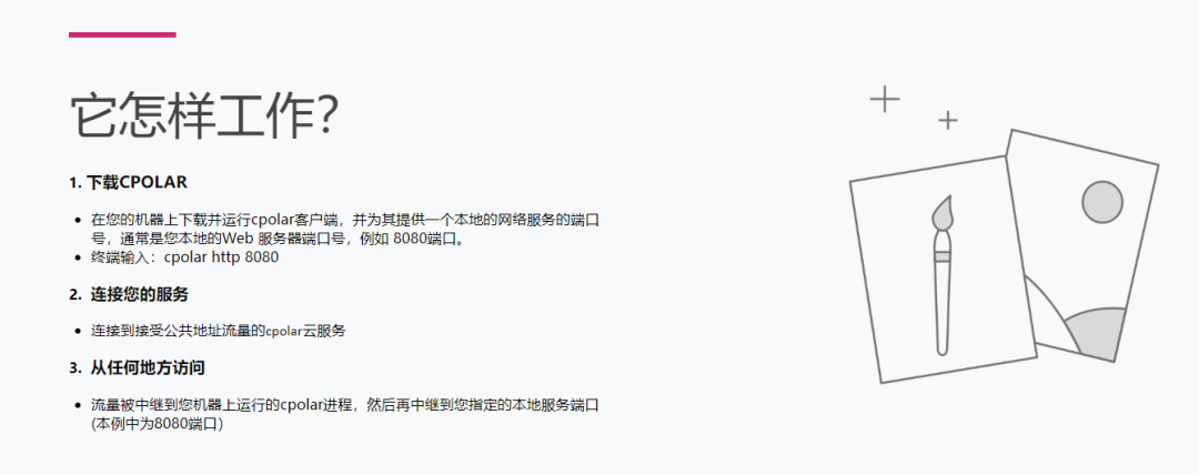 Web 开发与调试:开发者可以在本地搭建 Web 服务,通过 cpolar 实现外部访问。