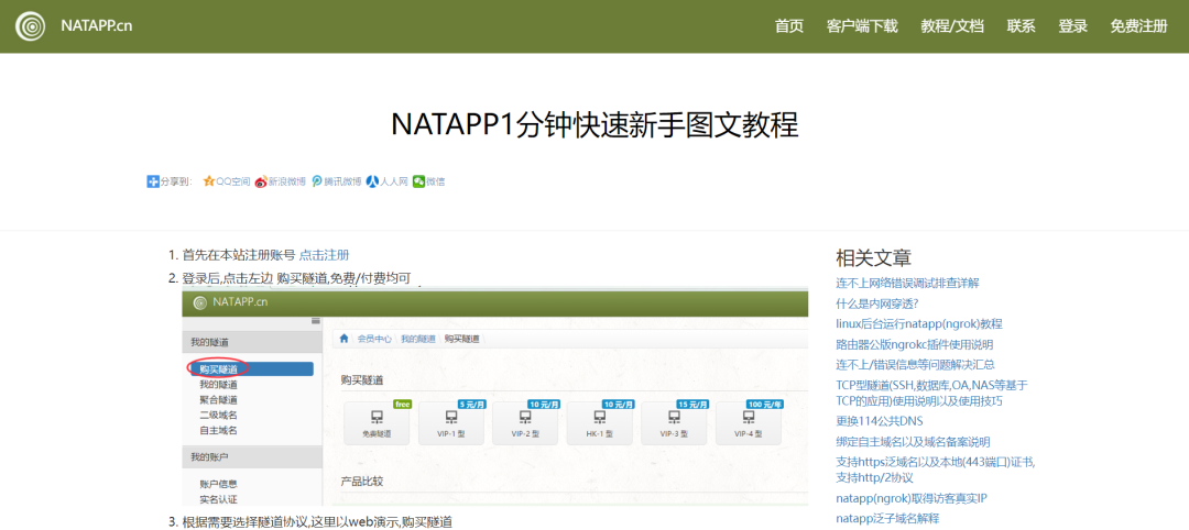 注册并下载 NATAPP 客户端。