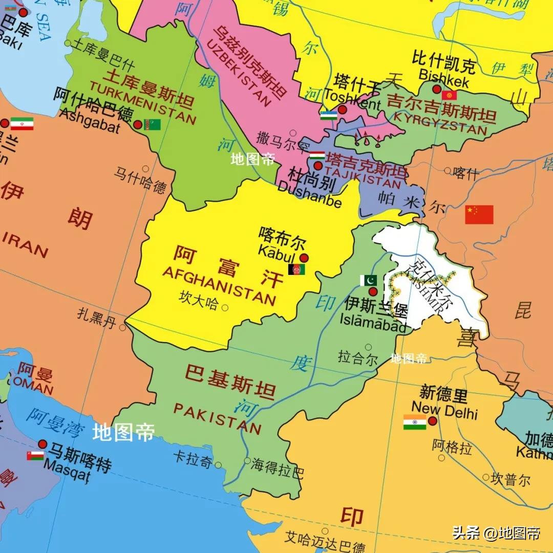 纳米比亚地图上最奇特的地方,是东边伸出来一条胳膊,搭在博茨瓦纳的肩膀上。相似的是,阿富汗主体部分距我国有数百千米,但其东北部凸出的狭长地带,像一条胳膊,搭在巴基斯坦和巴控克什米尔的肩膀上,伸手与我国接壤。