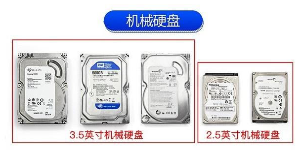 机械硬盘(HDD)根据尺寸,又可以分为2.5英寸和3.5英寸两个版本,两者差别就是个头大小,其中2.5英寸出现在笔记本中,两种形态都可出现在台式机中。