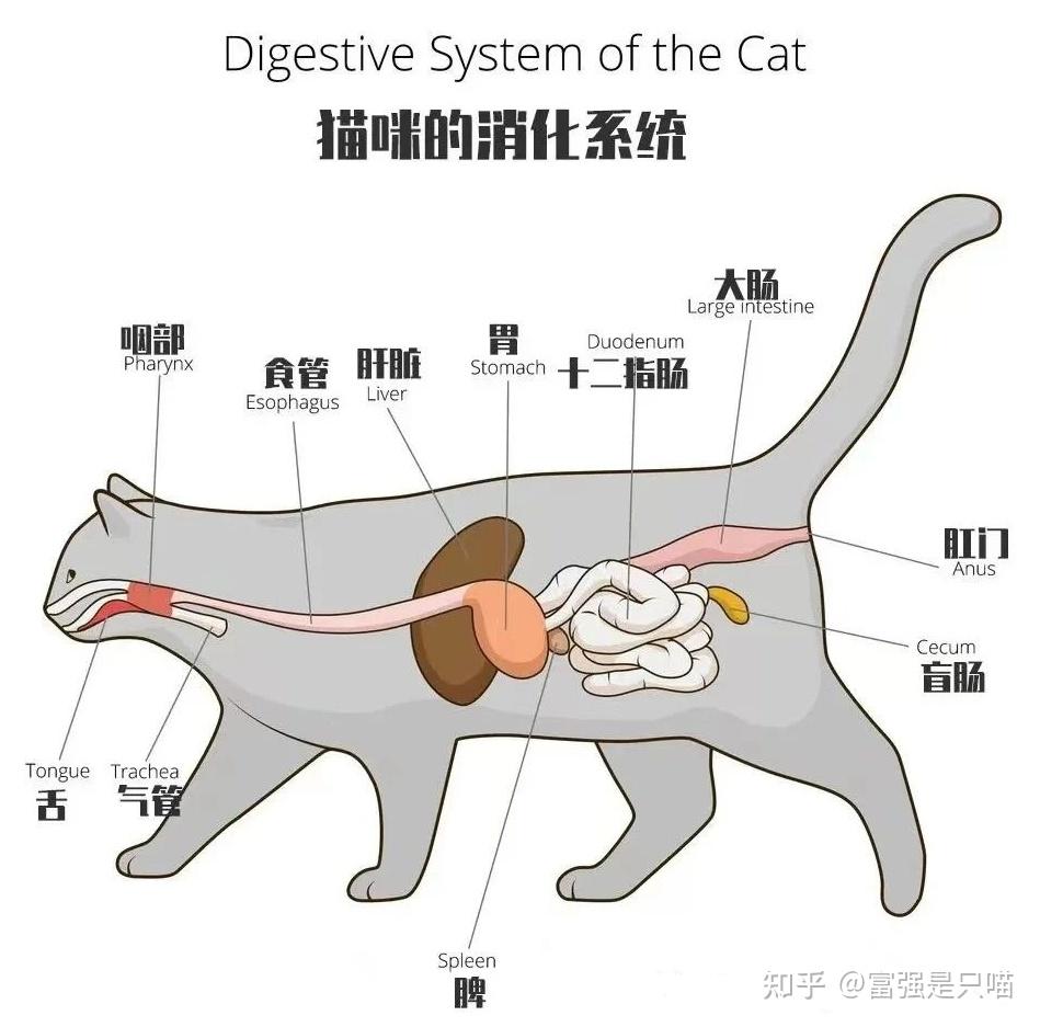 猫咪呕吐的原因大多都与胃肠道疾病相关,了解食物在猫咪体内的消化过程有助于我们更好判断猫咪的情况。猫咪进食后,食物依次会经过口腔、食道、胃、小肠、大肠、直肠、肛门...