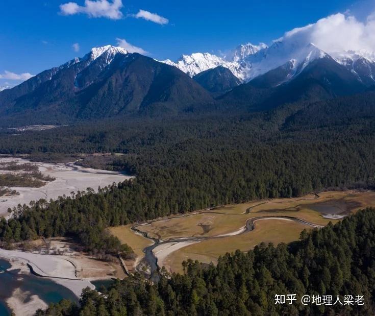 【西藏岗云杉林与远处的雪峰】