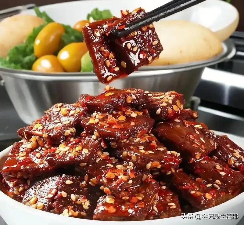 成型后,再用八角、小茴、肉桂、公丁、母丁、孜圆、波扣等中草药材,辅以桂皮和姜末等三十六味香料熬制成卤汁进行卤制,采用百年工艺制作,经三卤三烘,成品乌黑油亮,酱香浓郁,味道醇美,耐嚼爽口,风味独特,让人回味无穷,不仅味道好,而且营养丰富。