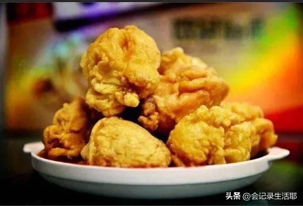 平江炸肉又称油炸面粉坨,是湖南岳阳平江的特色小吃,因其表皮爆裂而约定俗成,被冠名为“炸肉”。它是用肥膘丁、鸡蛋、麦穗、麦籽全干无砂籽,调匀的面糊,盛入板瓢,入油锅油炸而成。成品色泽金黄,吃起来外皮酥脆,内里多孔蓬松,用蒸笼蒸过,再加入时蔬,浇上骨头汤,既软糯,又有嚼劲,还带有肉香,非常可口,是平江情席的头碗菜。