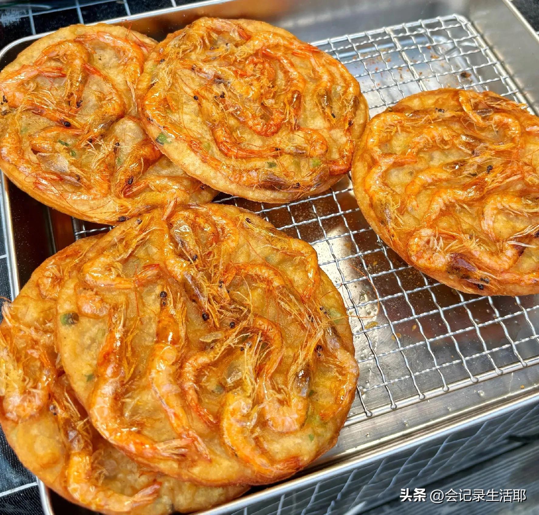 虾饼是湖南岳阳的风味小吃,它是用洞庭湖一带出产的鲜虾为主要食材,拌以面粉糊炸制成的。制作时,先将鲜虾去掉须后用水洗净,沥干后放入盆内,加入面粉、盐、清水拌匀,锅里倒入油,用中火烧至七成热时,分批将拌好的虾面糊舀入平底瓢内,用竹筷扒平,匀使虾重叠,然后入锅,炸5秒钟后虾饼便自行脱离铁瓢,抽出铁瓢再炸约4分钟夹起,沥干油即成。成品色泽金黄,吃起来味鲜香嫩,焦脆可口,口感丰富,深受大众喜爱,是不可错过的美食,