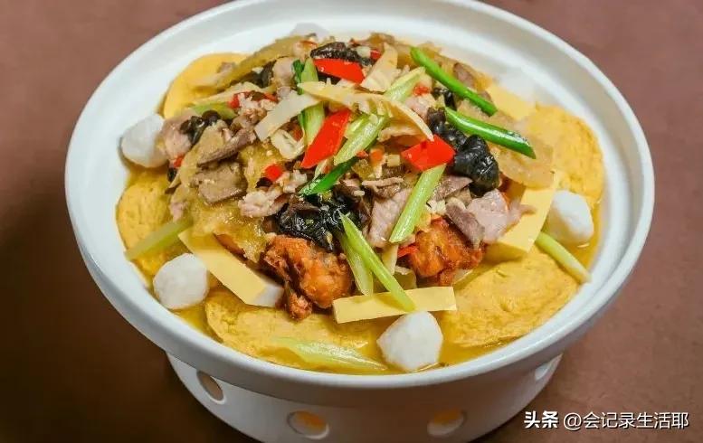 华容头菜又名 “三鲜头菜”,是湖南岳阳华容的特色美食,也是当地宴席第一道大菜。它是用酥肉为主要食材,配以卤蛋(原味蛋)、肉丸、鱼丸、蛋饺、蛋卷,经过独特的腌制技艺制作成型,摆盘,再蒸煮,最后,用鱼肚(猪肉皮)、芹菜、猪肝,加以黑木耳、黄花菜(以干菜为佳)、红椒丝、蛋皮丝、腰花、肉丝、笋丝或玉兰片等制作成盖码即可,制作工序非常复杂,成品色泽缤纷,吃起来味道醇厚,因食材非常丰富,富有层次感,不管是佐餐还是佐酒,都是非常不错的选择。
