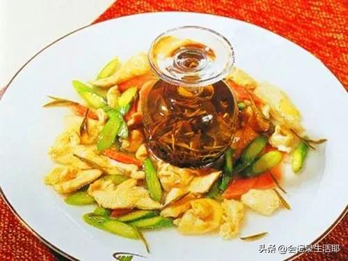 君山银针鸡片是湖南岳阳君山的特色美食,它是用用优质的鸡肉脯为主要食材,处理干净后,切片,煎至八分熟,另将鸡蛋清、百合粉、盐等调匀,入锅成型后,再配以君山银针茶汤,最后调味勾芡即可。成品鸡肉鲜嫩多汁,茶香四溢,既保留了鸡肉的原汁原味又增添了茶叶的清香,不仅口感独特,而且营养丰富,是一道不可多得的美味佳肴非常值得一吃。