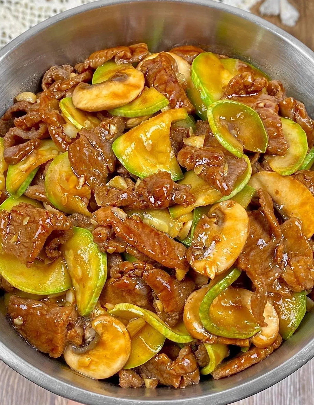 推荐做法:西葫芦口蘑炒牛肉(嫩而不柴、清补有劲的窍门)