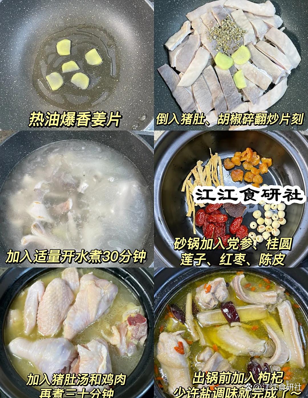 营养亮点:猪肚中的胃泌素促进胃酸分泌,鸡肉的维生素 B1 增强胃肠动力,常喝可改善消化不良,提升免疫力。