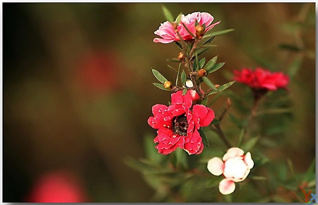 另外,松红梅可提取精油,具有抗病毒、抗霉菌等强力杀菌功能,可用于治疗各种呼吸道疾病,又因其气味芬芳,在国外常用于芳香疗法,治疗各种疾病。松红梅的花朵虽然不大,但开花繁茂,盛开时满树的小花星星点点,明媚娇艳,给人以繁花似锦的感觉。它的花期很长,在北方可从初冬开到初夏,在南方也能持续开放4个月之久。