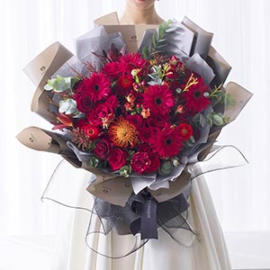 Roselove轻奢系列33枝红玫瑰+白色满天星