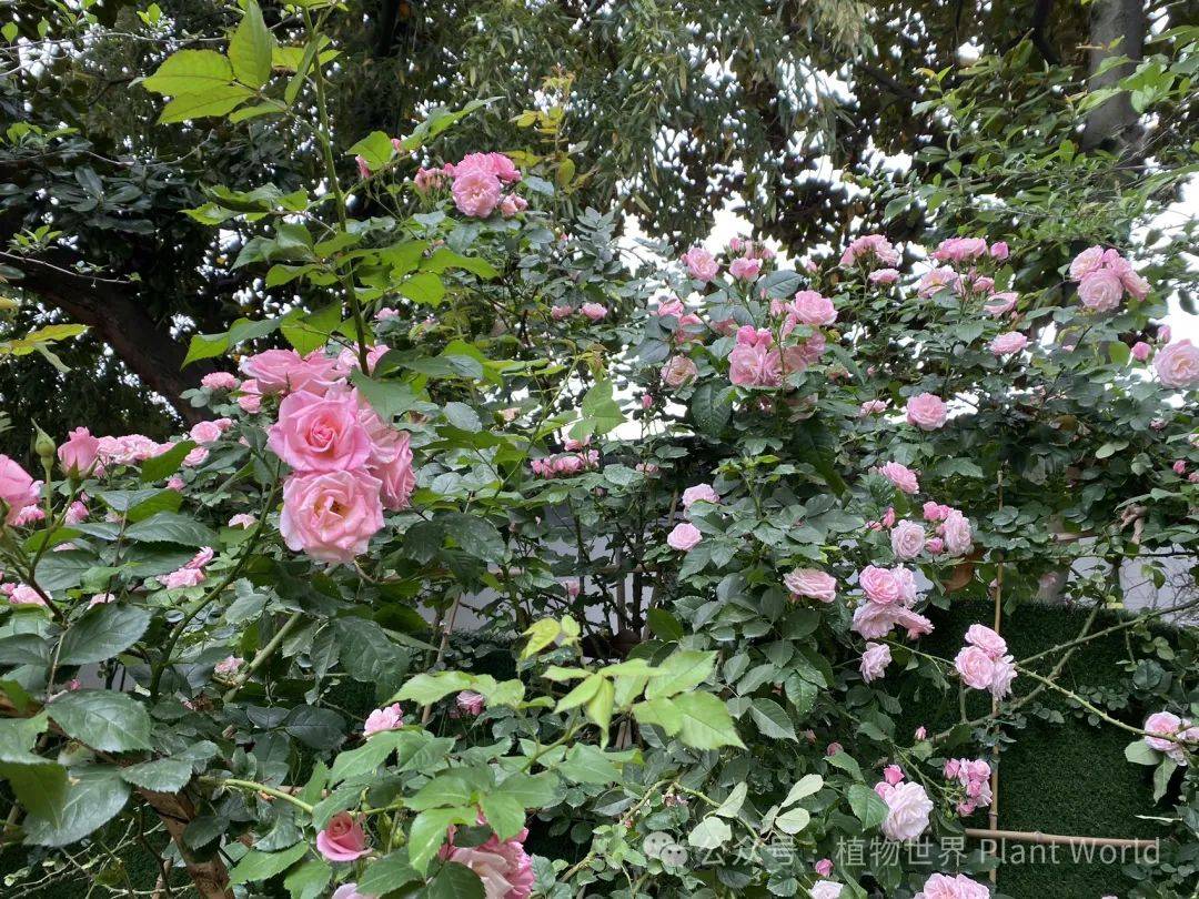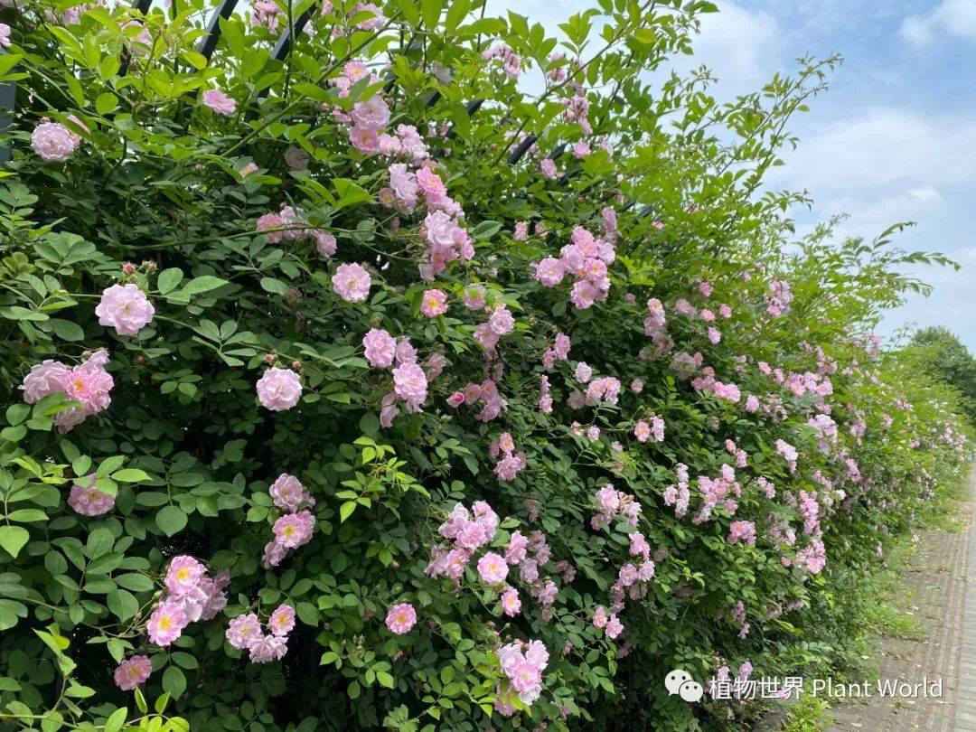 粉色蔷薇做的花篱