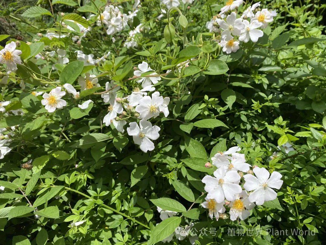 白色的野蔷薇经常开在树林或荒地中