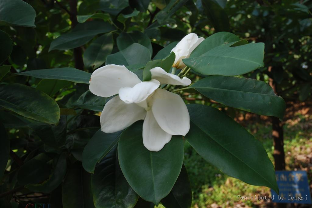 深山含笑的花朵开放时不完全展开,似含羞带笑,且香气浓郁;其雌蕊群具显著雌蕊柄,可与玉兰属植物区分。