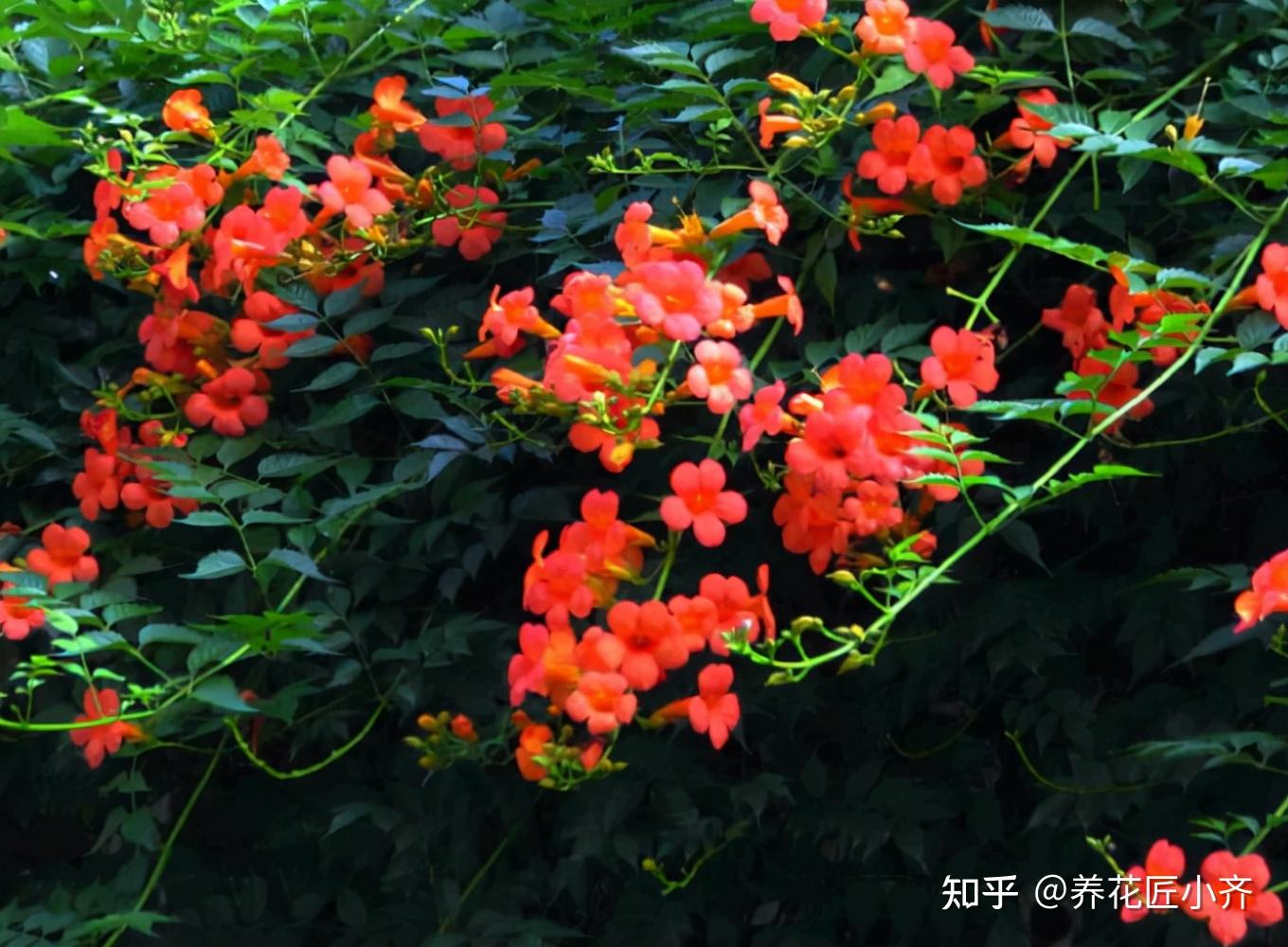 炮仗花也是一种开花比较个性的植物,因为它开花的时候一串一串,枝条垂下来就像鞭炮一样,红红火火的非常的美,他生长速度非常的快,爬藤能力非常的强,如果想养可以找一面墙栽上几棵,一年的时间就能够爬满。养它也是要保证光照充足,缺光枝条徒长,叶间距拉大,根本就不会开花,它主要的花期是在春季,春季一次就能够开爆,而且整面墙上几乎看不到叶片。