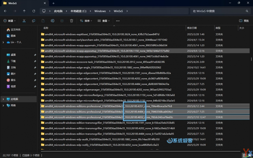 WinSxS 是 Windows 的关键部分,切勿手动删除或修改其中的内容!不当操作可能导致系统崩溃和数据丢失。