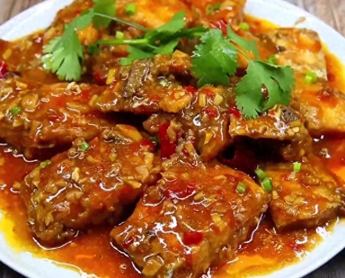 带鱼煎至两面金黄,再用浓郁酱汁焖烧入味,外皮酥脆,鱼肉鲜嫩,刺都想嗦干净!