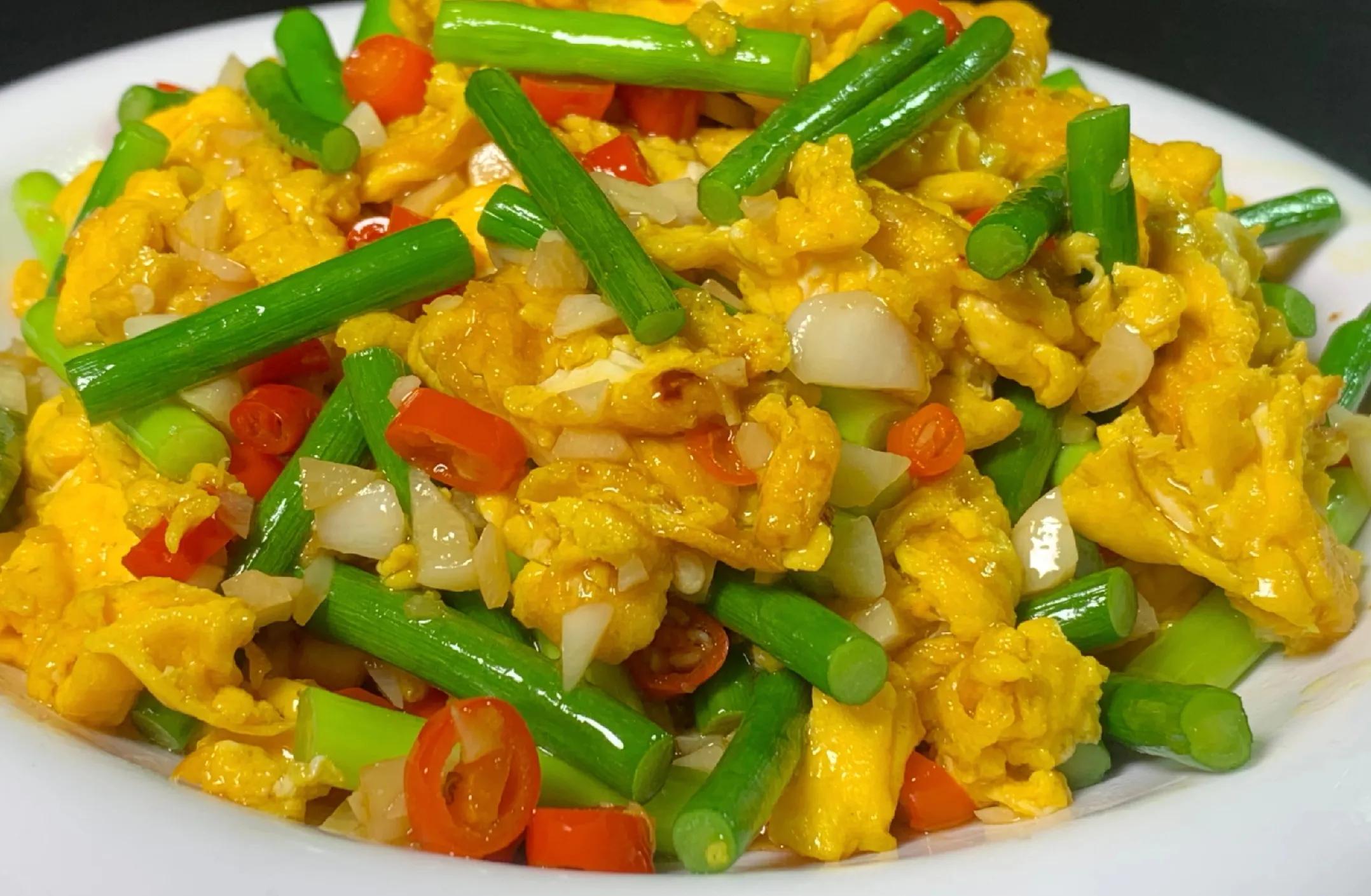 鲜嫩蒜苔和金黄鸡蛋搭配,营养丰富,口感层次分明,一口就爱上!