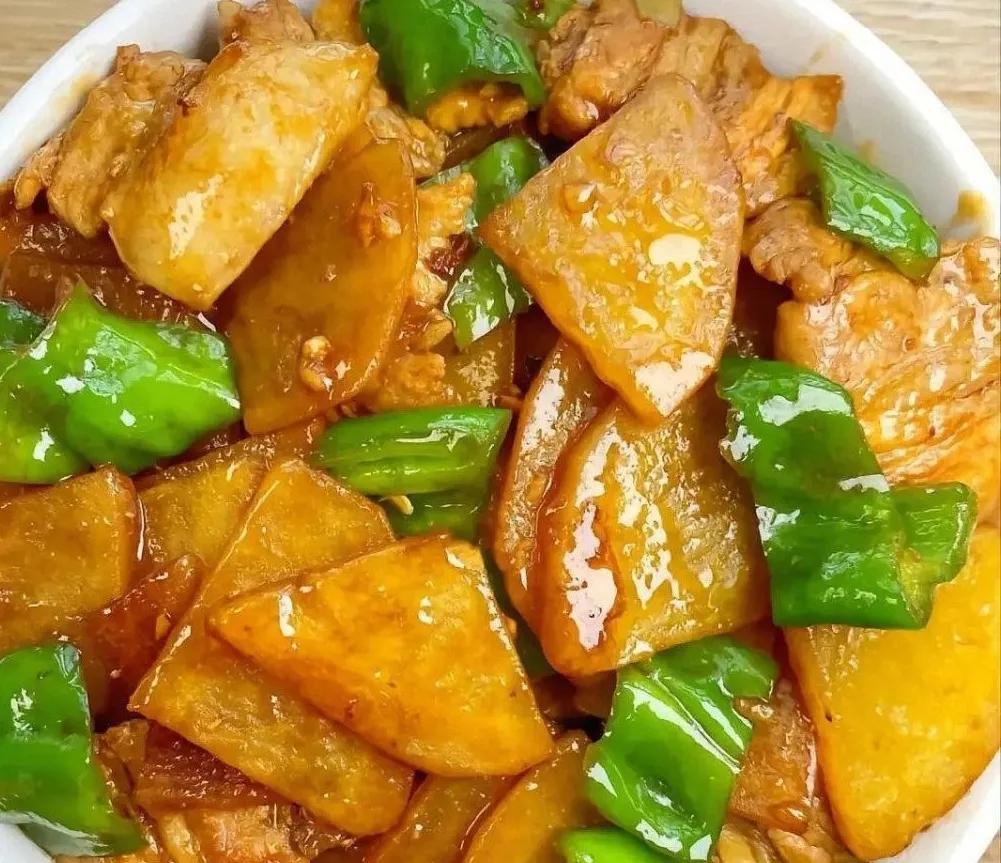 土豆片薄厚适中,和肉片一起翻炒,咸香入味,朴实又好吃,谁能不爱?