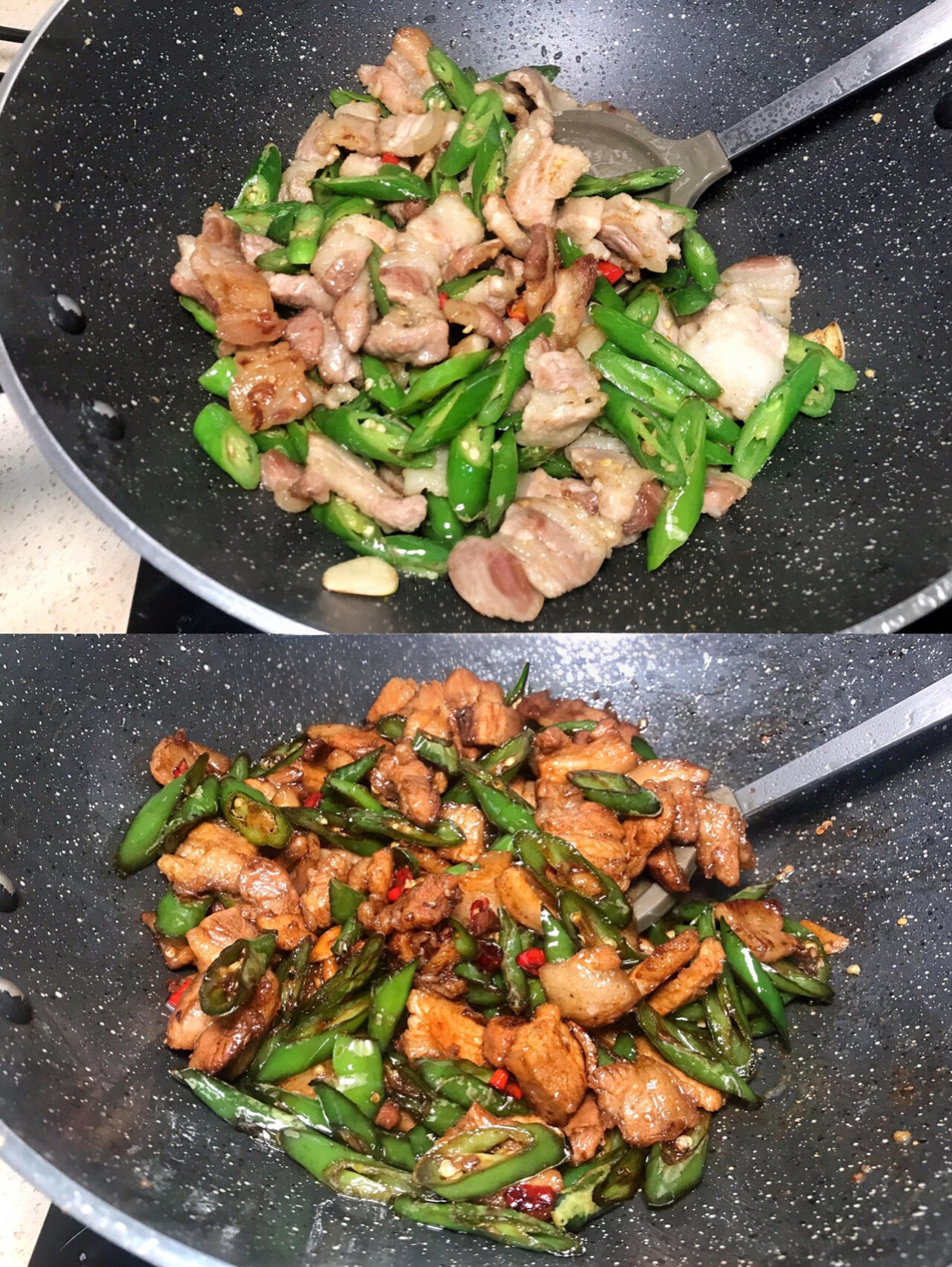 经典解馋的青椒炒五花肉,五花肉煸炒至焦香出油,搭配青椒爆炒,肥而不腻,香辣开胃,油脂的香气与青椒的清爽中和,越吃越香,妥妥的干饭神器。