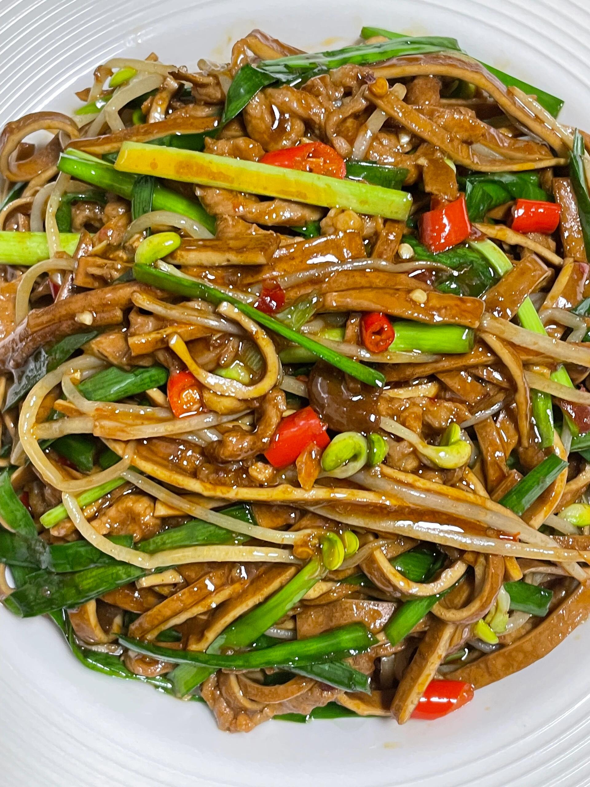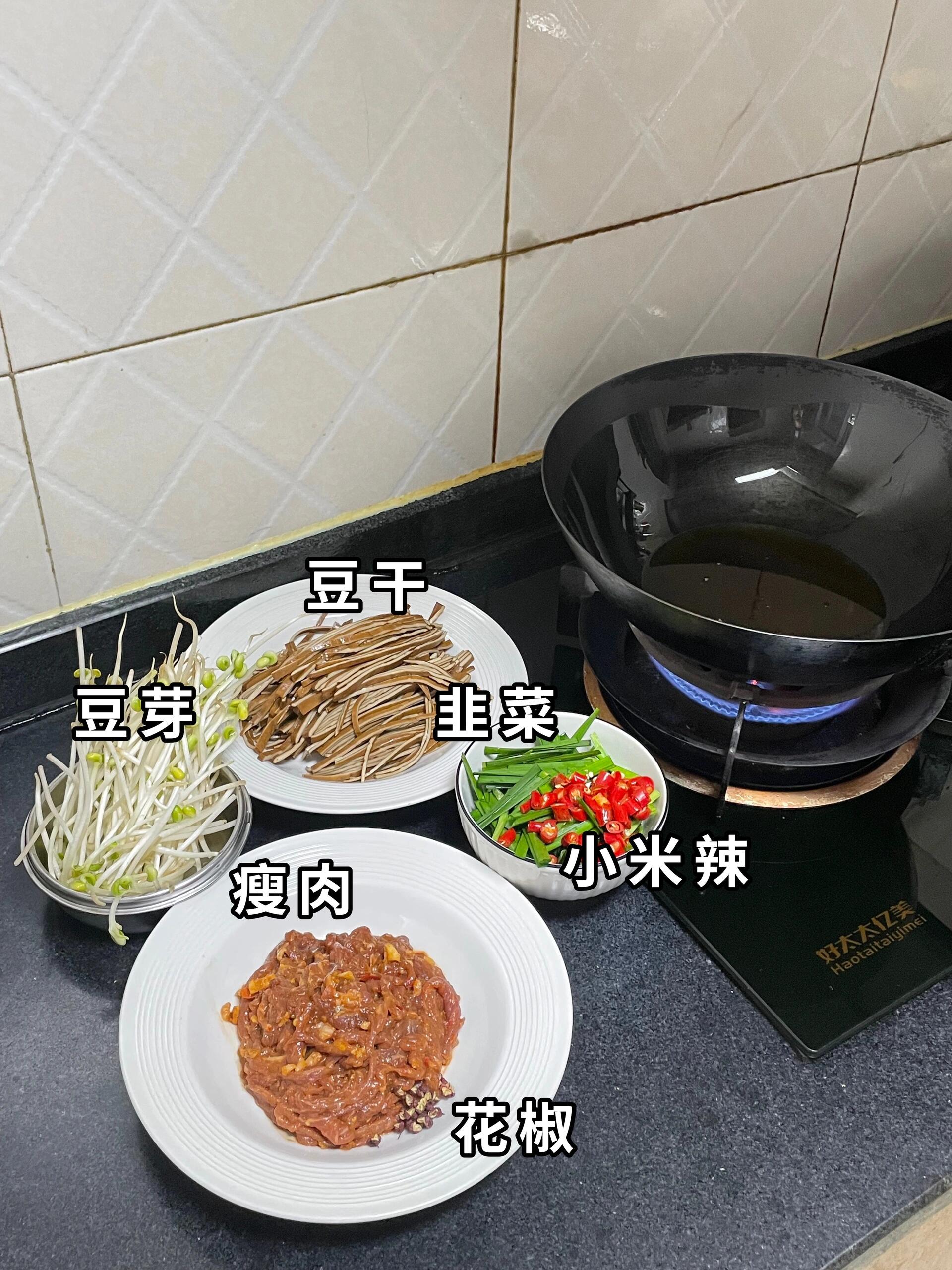 清爽解腻的豆芽韭菜炒肉,脆嫩的豆芽、鲜香的韭菜与肉丝同炒,口感层次丰富,咸鲜适中,清爽不油腻,简单家常却格外下饭,是餐桌上百吃不厌的快手菜。