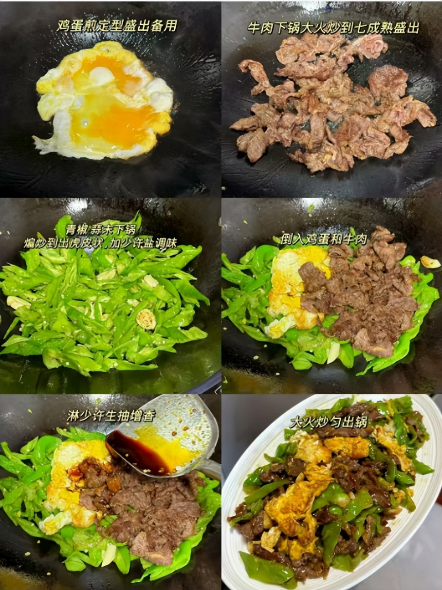 一、【青椒鸡蛋炒牛肉】