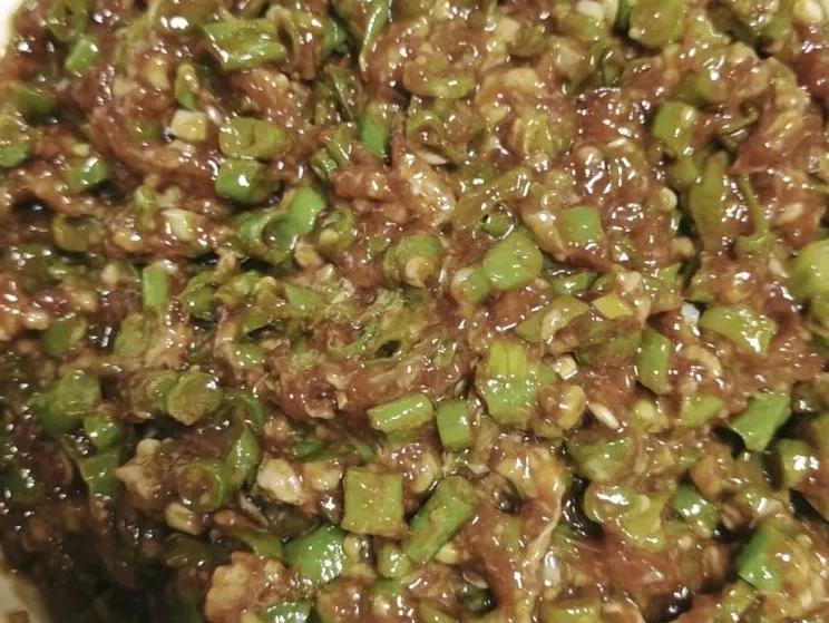 2,肉沫放入豆角里,加葱姜末,生抽,蚝油,一点老抽,适量的盐,胡椒粉,味精,然后浇两勺热油激发出香味。