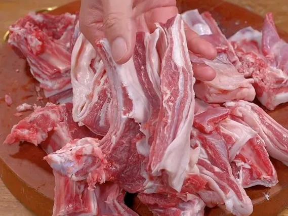 1,羊排剁成小块,放入盆里。加三勺食盐,然后用温水浸泡二十分钟。血水泡出来之前,再清洗两遍。