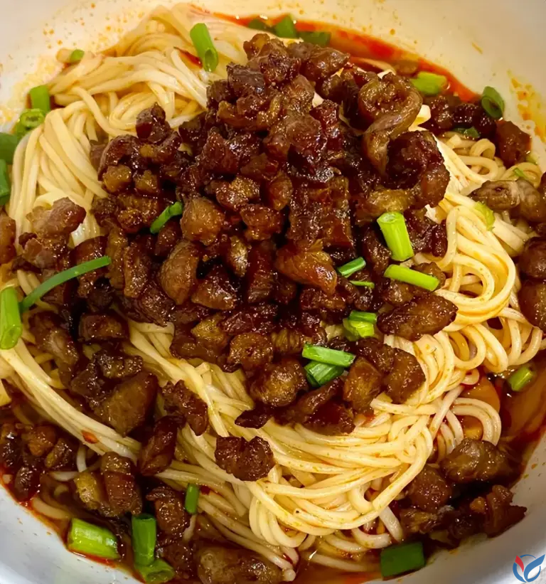 担担面起源于挑担叫卖的街头小贩,名字就是这么来的。细面条拌上肉臊、红油、花椒面、芽菜和葱花,一口下去,麻辣鲜香一齐涌上来。它不只有辣,还有咸香和微微的酸甜,川菜复合味型的特点在一小碗面里展现得淋漓尽致,是四川最具代表性的小吃之一。
