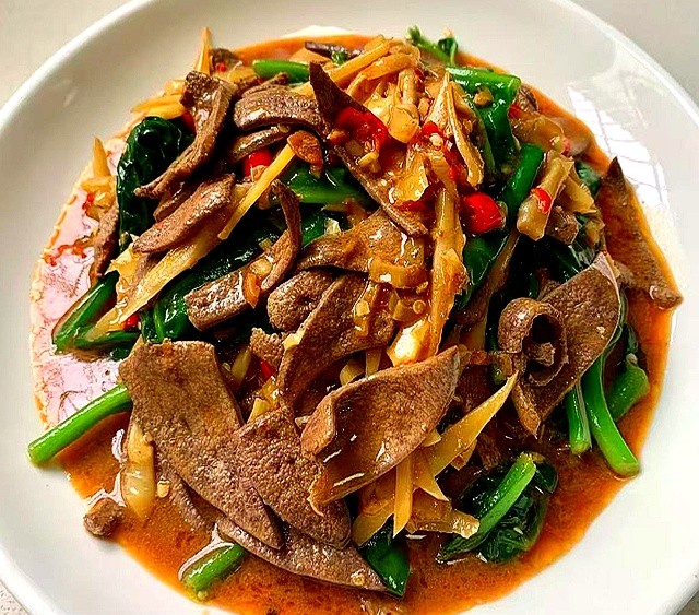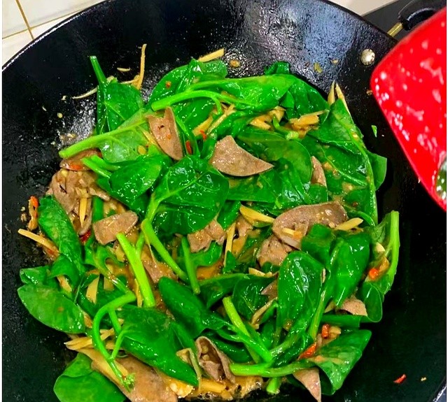 把猪肝当货车,木耳菜当高速路,一块炒等于给血液开绿色通道。