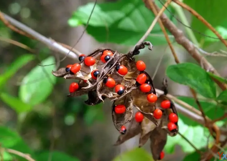 相思子的种子含有剧毒。毒蛋白是其主要毒性成分,这种毒素一旦进入人体,会破坏人体的红细胞,引起呕吐、腹泻、呼吸困难等症状,严重时会导致死亡。相思子外观颜色鲜艳,容易被孩子当作玩具或食物。
