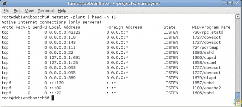 在运行之前,我们需要确保目标主机(在本例中为本地主机)上运行 SSH 服务器守护程序。如下面的截图所示,我们可以使用netstat命令来执行此操作。此命令将显示所有监听特定端口的运行服务: