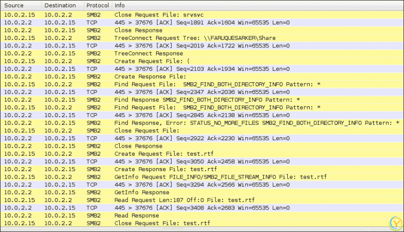 如果您可以使用tmpfile模块从 Windows 共享复制文件。例如,如果您在C:Share est.rtf路径中创建一个文件,则以下附加代码将使用 SMB 协议复制该文件: