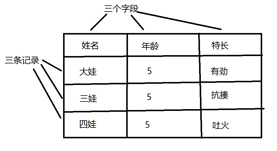 exit数据元素 --> 记录 -->数据表 --> 数据库