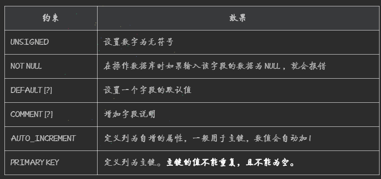 注:约束是一种限制,它通过对表的行或列的数据做出限制,来确保表的数据的完整性、关联性