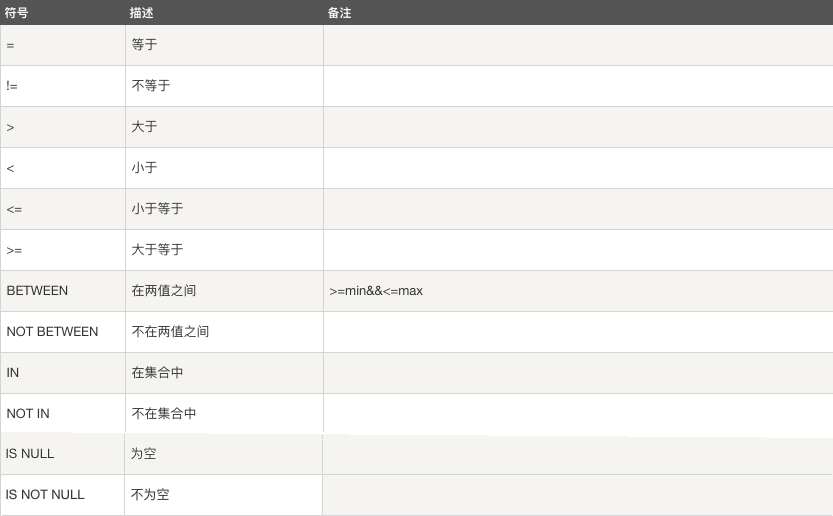 select * from class where sex='m' and score between 90 and 100 and age>9 ;where子句 where子句在sql语句中扮演了重要角色,主要通过一定的运算条件进行数据的筛选,在查询,删除,修改中都有使用。 算数运算符