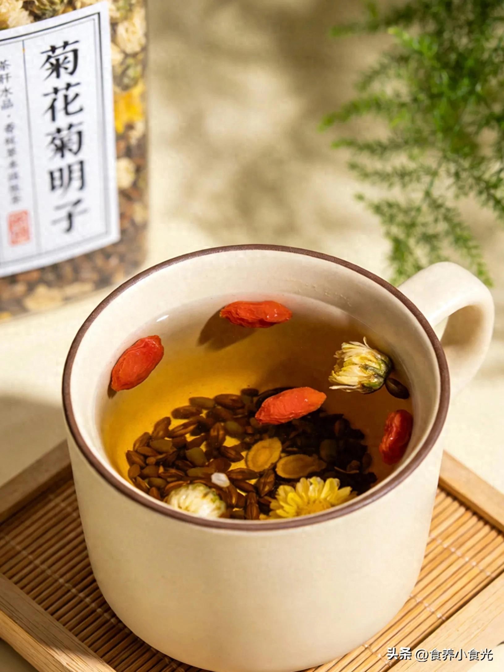 搭配一:枸杞+菊花+决明子(清肝明目+解疲劳)