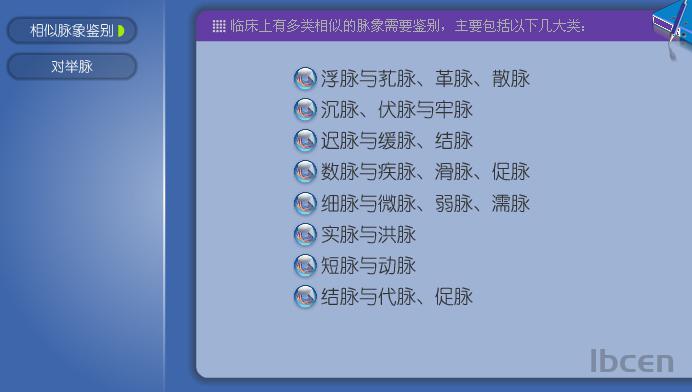 我们把能够反应同一脉象要素相对两个方面的一对脉象称为一对对举脉,常见的有以下几种。